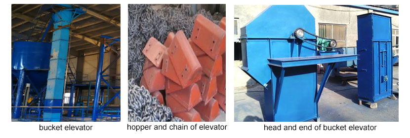 Plate chain bucket elevator, the use of plate chain and hopper connected to form a ring, driven by the first wheel, lifting materials; It adopts inflow feeding, induced unloading and large capacity hopper intensive arrangement, and there is almost no material return and digging phenomenon during material lifting, and extrusion and collision phenomenon rarely occur between materials.